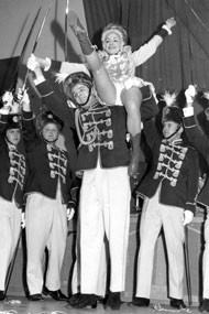 In der Session 1973/74 stellte sich das Kindertanzcorps in seinen schmucken grün-weißen Uniformen erstmals mit seinen neu einstudierten Tänzen der Öffentlichkeit vor. Ohne Überheblichkeit kann man sagen, dass der Auftritt dieses Corps bei der ersten Sitzung am 26.1.1973 wie eine Rakete einschlug. 22 Kinder im Alter von 5 bis 12 Jahren marschierten, angekündigt mit einem Paukenschlag, in den vollbesetzten Rezagsaal ein und eroberten sich die Herzen der Närrinnen und Narren mit Stippeföttche und Radschlagen im Sturm. Ein nicht enden wollender Applaus war der Dank für diese gelungene Überraschung. Präsident Hans Zimmer rief spontan seinem närrischen Publikum zu: "Für die nächsten 25 Jahre haben wir ausgesorgt“. Wie recht er hatte!